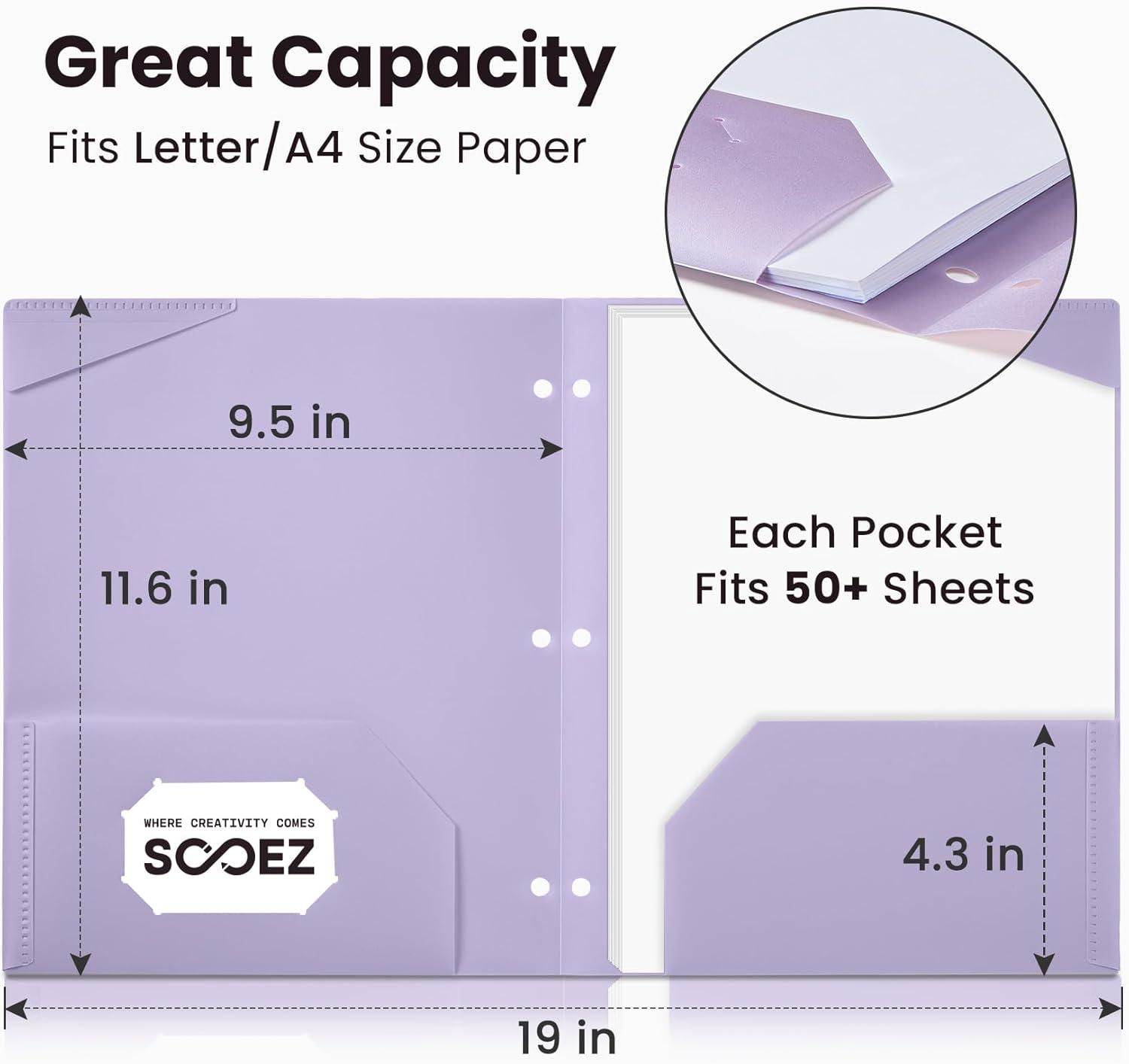 Dimension & Capacity:Each 9.45″L x 11.65″W plastic 2 pocket folders come with two 5″ high pockets that each can safely hold up more than 50 letter-sized documents, sales sheets, brochures and more.