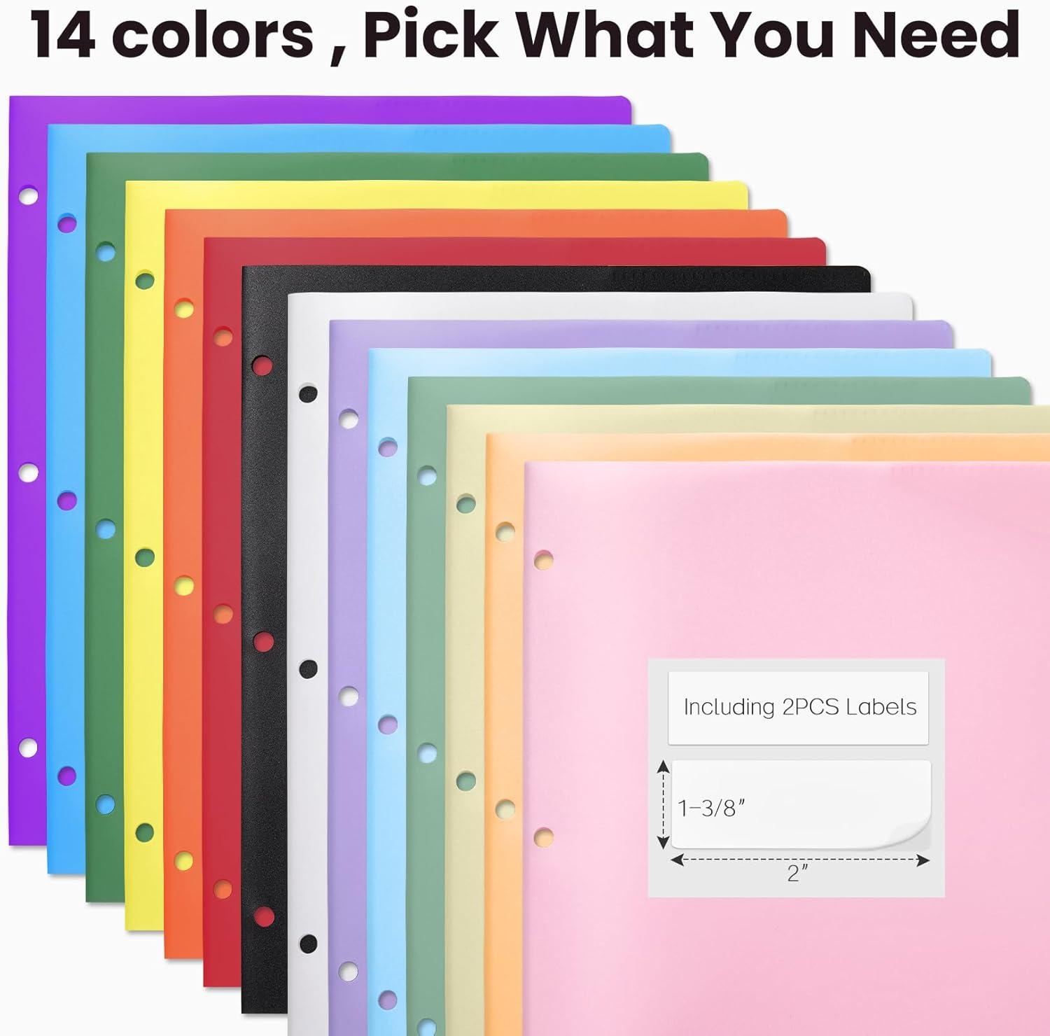 imageSooez 2Pocket Folders Plastic Folders with Pockets 3 Hole Punched 1 Pack Pockets Folder for 3 Ring Binder with Labels Heavy Duty Binder Folder for Document Letter Size File FolderBlackBright