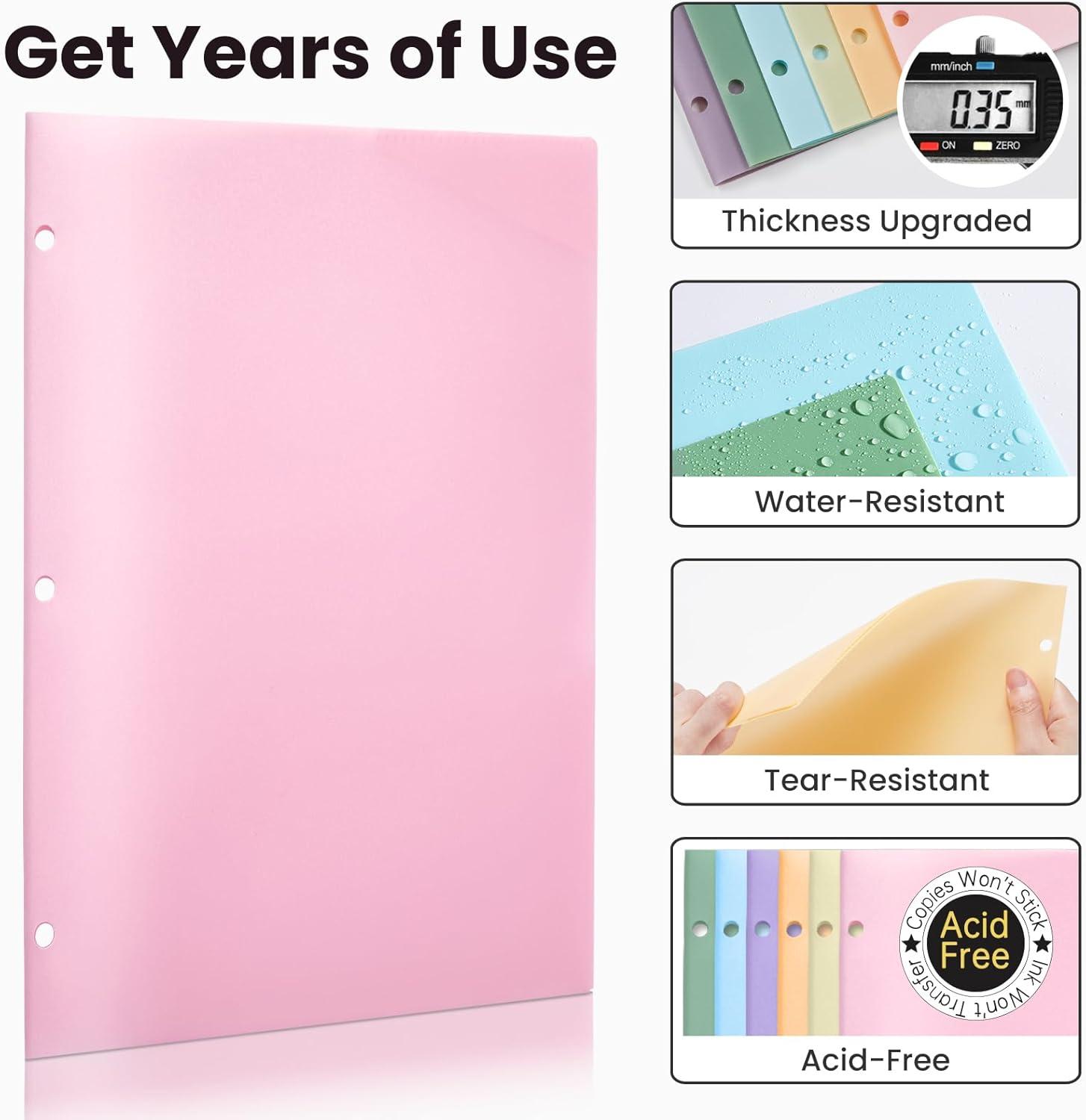 Stable & sturdy Material: Our folder is 0.35 mm thick. The thickness of our plastic folders exceeds that of our rivals', even twice thick. Made of durable and cleanable poly material, water-resistant, tear-resistant and acid-free folders can last for many years.