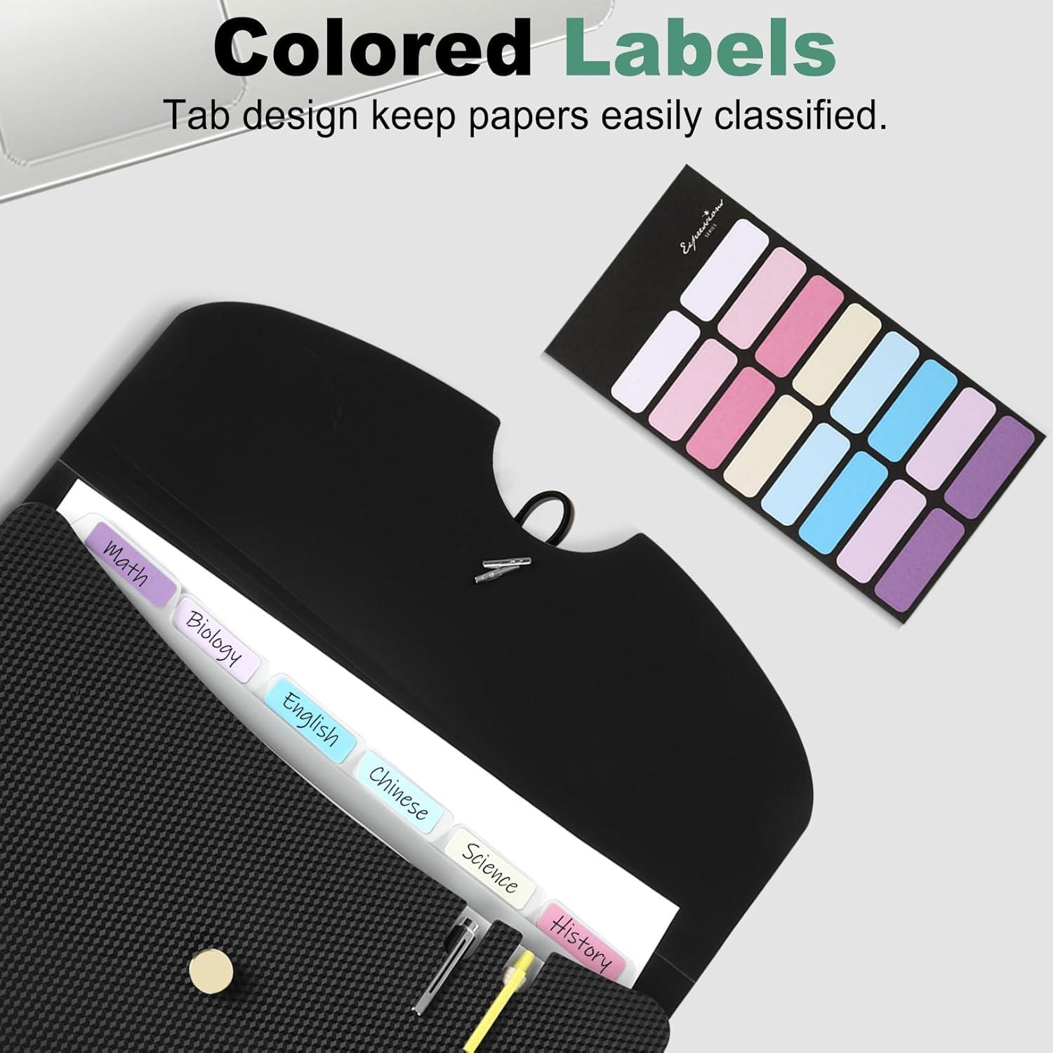 Easy Organization: This expanding file folder makes sorting and organizing your papers a breeze. Featuring 7 pockets with tabs and colorful labels for quick sorting and retrieval.