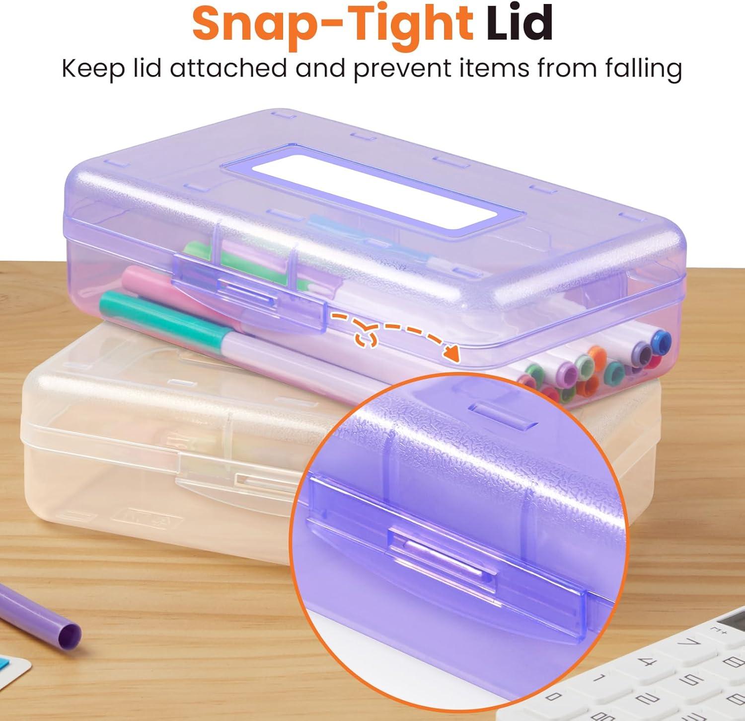 Get up to 70% off on Sooez Pencil Box with Personalized Sticker, Large Hard Pencil Case Organizer, Clear Plastic Crayon Box for Girls and Boys, Colored Marker Organizer, Small Plastic Containers/Bins with Lids, Art Supply styles during our end-of-season clearance event.