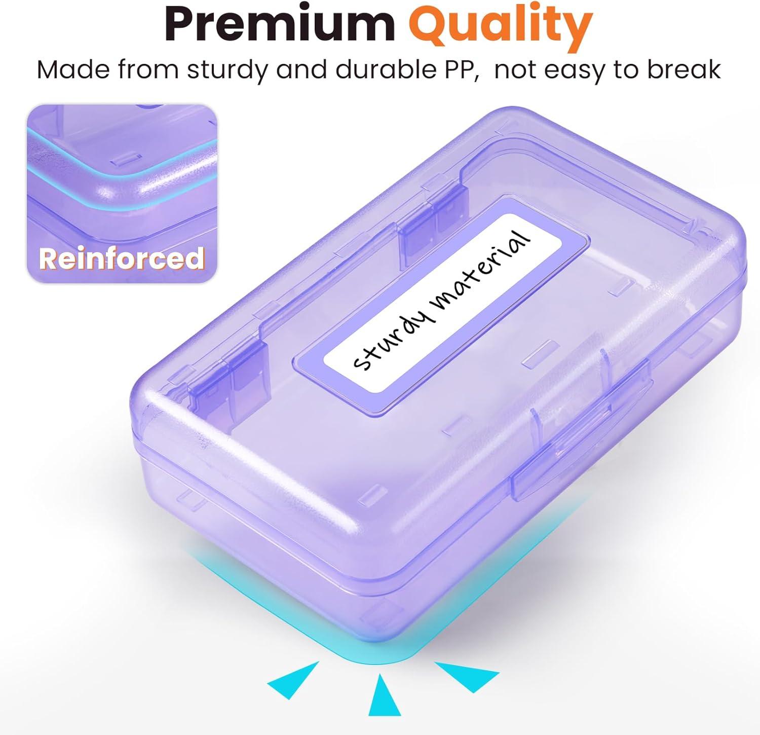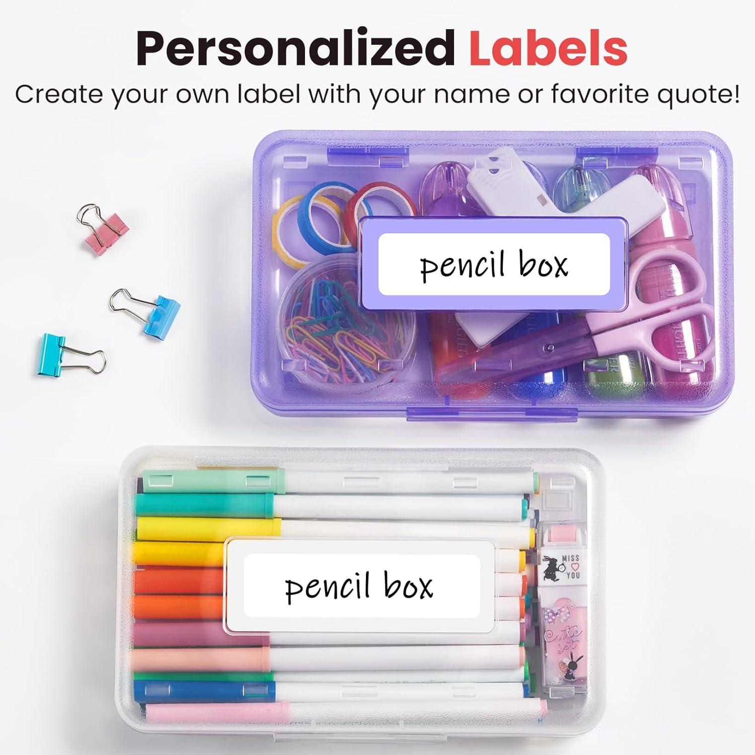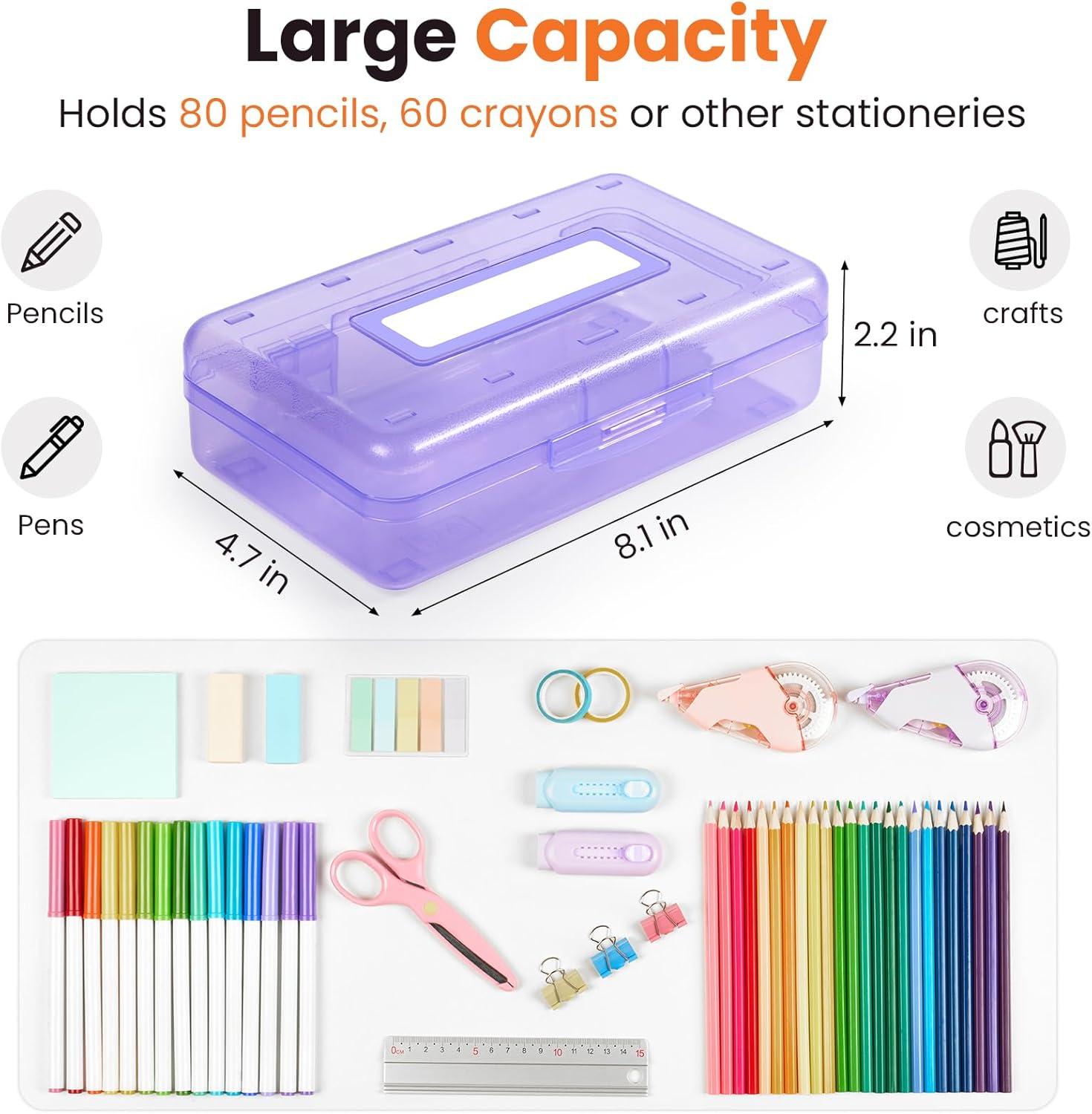 Sooez Pencil Box with Personalized Sticker, Large Hard Pencil Case Organizer, Clear Plastic Crayon Box for Girls and Boys, Colored Marker Organizer, Small Plastic Containers/Bins with Lids, Art Supply